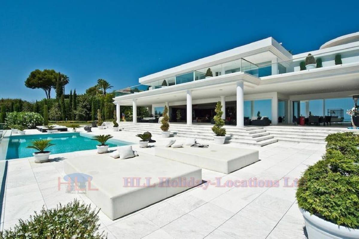 One of the exceptionally finest villas in Sierra Blanca, Cascade de Camojan, Marbella, fantastic panorama view, 7 bedrooms, infinity pool, can be heated, elevator on all 3 levels, suitable for handicapped people (limited access with wheelchair to the pool), exclusivity and luminosity combine with the best materials makes this villa unique.The spaceNot only the view over the whole surrounding area and the near by fantastic spectacular mountain range makes this breathtaking villa so unbelievable. In combination with the huge infinity pool, which is to be heated on request and the absolute first class maintained garden (terraced in 3 levels), with special waterfall bar (can be illuminated in the night) offers this fantastic property an ambivalent feeling of being in a dream.Huge terraces around the villa on all three levels and the fantastic views makes this property special and nearly unique.Throughout the whole property there is a flair that attracts exclusivity and luminosity, for all rooms have ceiling windows glazing for to get a cool sea breeze. Furnished in Versace, designed with top modern features and high quality luxurious materials make on top this villa very light with plenty of room.The villa has all in all 3 levels, connected by a central lift and in the entrance area a tastefully double staircase leading to the upper level, where are the first 4 big bedrooms with incredible space. Two of the bedrooms have separated extra lounge rooms with flat screen TV. The master suite with en-suite bathroom and Jacuzzi offers as well access to the huge terrace front to the top level with fantastic sea view.On the ground floor you will find an extravagant furnished living- and dining area with piano, a fully with extraordinary kitchen built-in elements equipped kitchen space, a guest powder and toilet room, a laundry room and a stocked with Internet office.In the basement there are two separate apartments, one "VIP" apartment, equipped with all high class furnishings you need to be absolute independent and the second one with altogether two separate bedrooms, a little kitchen front and a living room with small billiard table (also access to a huge terrace).The big billiard table, a cinema room and a gym, beside a bodega with wine cooler, follows and you can see what the owner loves. Fishes where ever you look, through the glassed aquariums you can see into a big garage with space for round about 5-6 cars, or in the garden the Koi carp pool with automatic feeder for this exceptional flatmate.The whole building is representative - a real dream property.