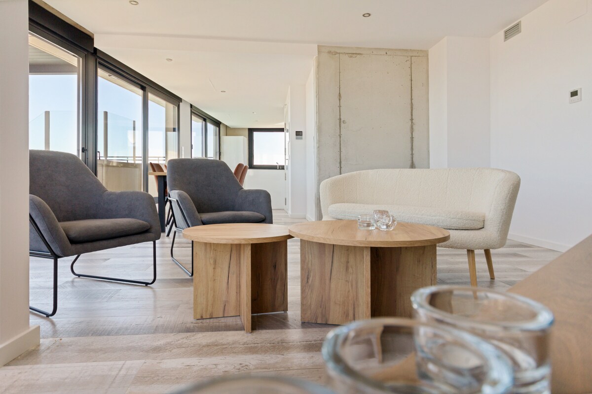 Dream penthouse on the Costa del Azahar with infinity pool and views of the Mediterranean and the historic castle of Peñíscola.Luxury vacation in Benicarló.Imagine waking up in the morning and enjoying a sunrise and breakfast under the pergola with the sea in front of you and ending the day with a drink in the pool while contemplating Peñíscola Castle. This newly built penthouse makes it a reality.The interior is designed with modern style and high-quality materials.