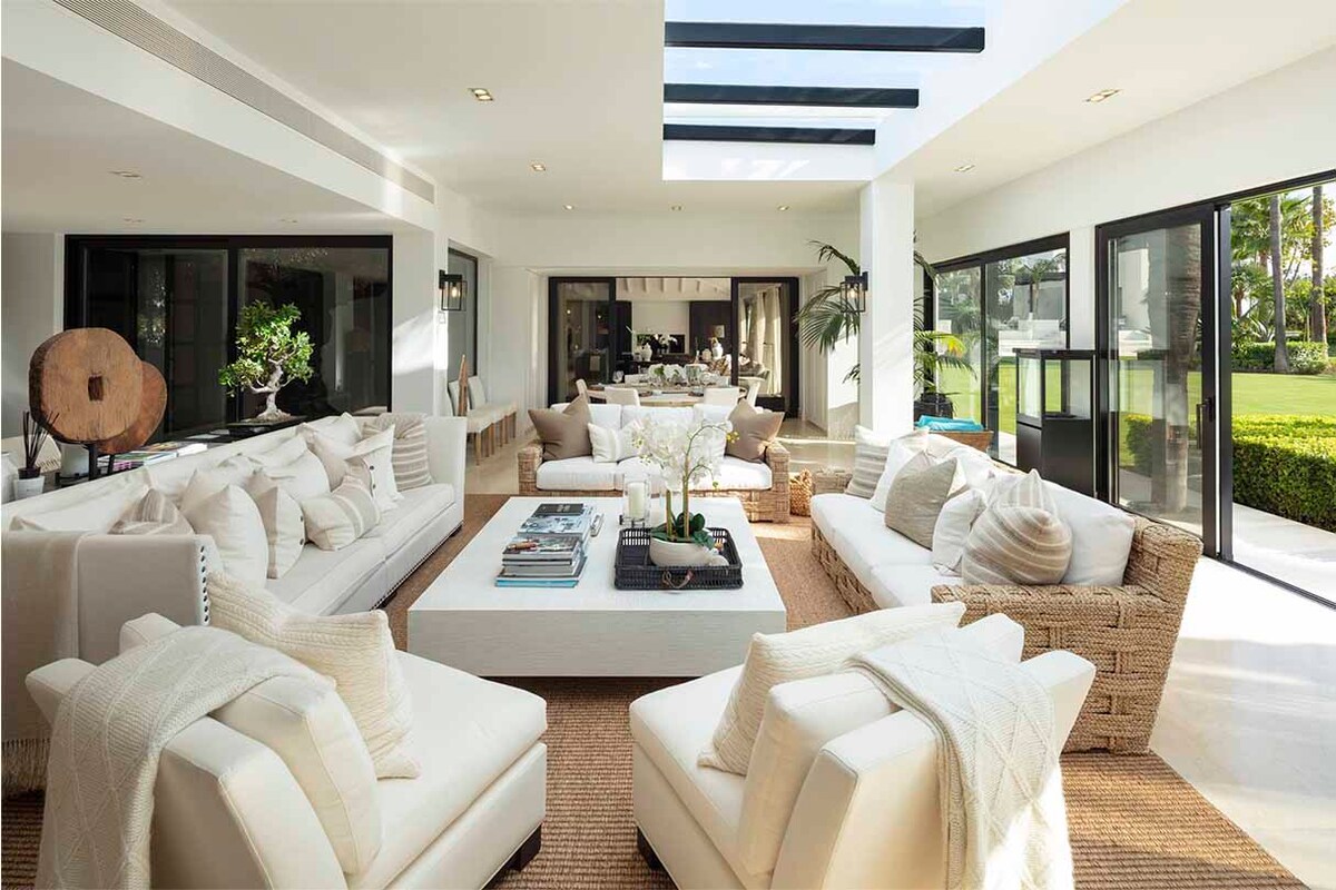 Villa Jazmín is a unique and exclusive Villa located in the Real Club de Golf Las Brisas, a few minutes from Puerto Banus, where you can disconnect from your routine and enjoy an unforgettable vacation in the company of your family and friends.The spaceVilla Jazmín has three independent houses. The main house has five spacious double bedrooms with a double bed en suite and two separate guest houses with two bedrooms en suite each. All rooms have smart TVs. The house also has a separate service area with four bedrooms and three bathrooms, a kitchen and a laundry area.Villa Jazmín has a large fully equipped kitchen with an office and a large living/dining room overlooking the garden.Outside there is a barbecue, pizza oven and an outdoor table to eat in the garden.Guest accessVilla Jazmín has large garden areas, three outdoor pools and a heated indoor pool, a spa area with a sauna, jacuzzi, pool and massage area and a fully equipped gym. The house has a car available for guests to get around. A copy of the driver's license must be sent prior to booking in order to use it.Villa Jazmín has an outdoor surveillance circuit with video cameras and WiFi.Registration DetailsAndalucia - Regional registration numberVFT/MA/47798
