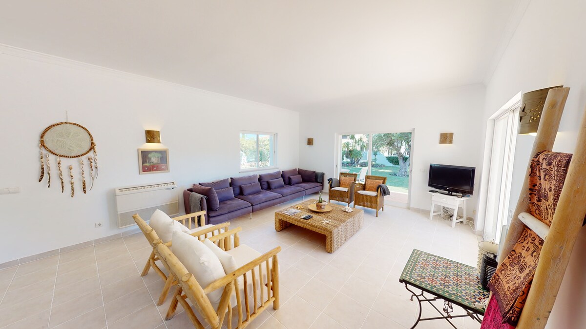 The villa is located in a quiet area, just 30 minutes walk to marina(3 km) and beach and 500m to the new and biggest supermarket Pingo Doce and Continente (1 km).Surrounded by golf courses, it is a private family holiday house perfect for your holidays!The spaceBig villa and all fenced garden ideal for family,very well located just thirty minutes walk from marina and beaches.This house is located near the new supermarkets Pingo doce and continente which is fantastic for shopping!The gardens are absolutly lovely with lots of shadows and space for adults and children to relax.Please note that decor was recently slightly changed.Towels and bed linens are changed once a week.Heaten pool for an extra cost of 400 Euros per week.Guest accessThe property is private and for the use of guests only.Other things to notePlease provide your passport details,and let us know one hour before. Your arrival or when you are at the airport.Children mustn’t be unattended at the pool which is very deep in some zones.Please note that some decoration may be diferent due to renovations.Registration Details17665AL