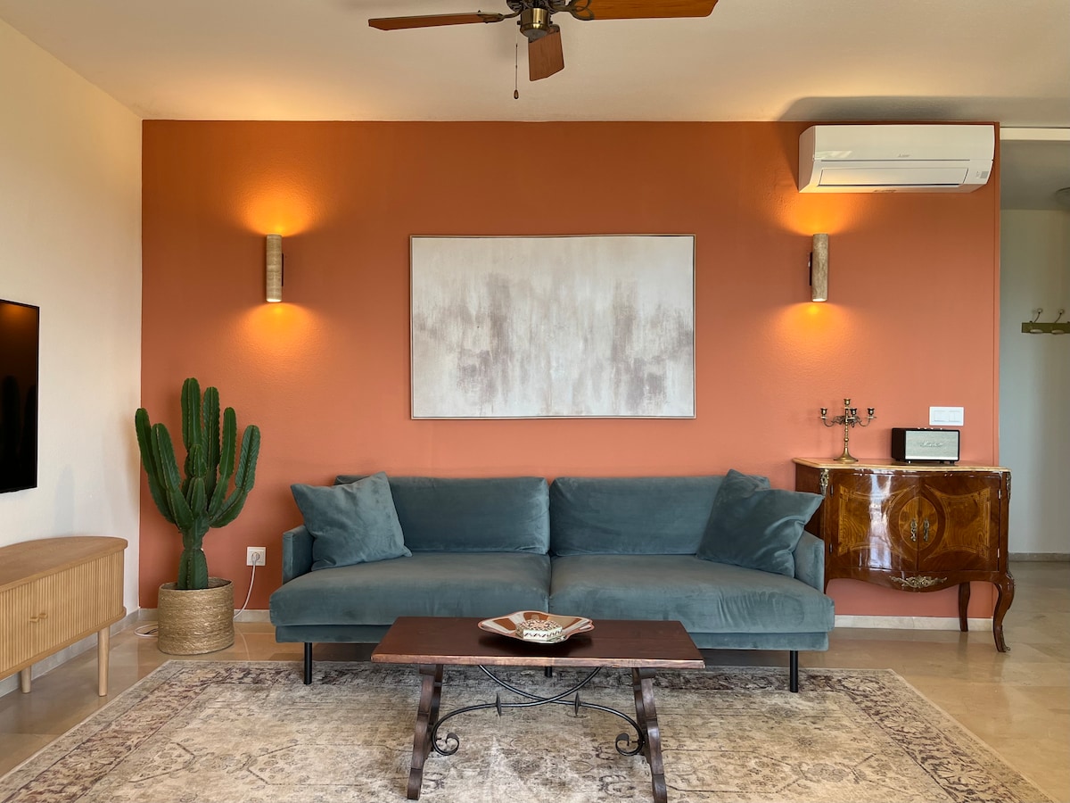 Wake up to stunning views, watch dolphins on their breakfast swim and step outside to the beach trail. The Mediterranean isn’t just a view here — it’s part of your daily rhythm. Welcome to your perfect coastal escape in Mijas Costa!The spaceBright and beautiful apartment, furnished in detail for your comfort. The large balcony is perfect for relaxing and outdoor dining. It opens up to deep blue views of the Mediterranean. On a clear day (as most days are), you’ll see African continent in the horizon and the Rock of Gibraltar too. Nearer to the shore, right in front of your balcony, it’s not uncommon to see a pod of dolphins leaping from the water. Picture perfect!The property has a nice garden with swimming pool and separate kid’s pool. GREAT LOCATIONThe location is unbeatable. The coastal path ’Sendo Literal’ goes right in front of the property and you have a private tunnel connection to this seafront promenade. You have short and beautiful route to Bombo Beach and Butibamba Beach. Great range of chiringuitos, restaurants and bars are within short walking distance, good supermarkets too. You can reach the Saturday market and the center of La Cala easily by foot. It is super convenient to arrive and explore the region by car. Only 25 minutes from the airport, 10 minutes to Fuengirola, 20 minutes to Marbella Old Town. There’s free and easy street side parking available.APARTMENT FEATURESFrom the lounge you look out through the large windows, which when opened, creates an indoor - outdoor living experience. Brand new open-plan kitchen is perfect for social cooking - with Mediterranean views of course. High quality furniture, appliances and features throughout for a perfect stay, like good WiFi connection, Smart TVs and individually controlled AC in all rooms. On the quiet back-yard side, there are 2 bedrooms. The master bedroom has 160cm wide double bed and Smart TV. The other bedroom comes with 135cm wide double bed, small desk and a chair. Both bedrooms have built-in wardrobes with plenty of space for storage. First bathroom has a bathtub/shower, and the smaller bathroom has a shower. In addition, we can prepare a 135cm wide extra floor mattress.The highlight of the apartment is a spacious balcony with uninterrupted sea views. It has good space for morning yoga, reading a book on a comfy lounge chair, or having a dinner outside in the Andalusian summer night.Registration DetailsSpain - National registration numberESFCTU00002904400033906200000000000000000000000000002Andalucia - Regional registration numberVUT/MA/100092