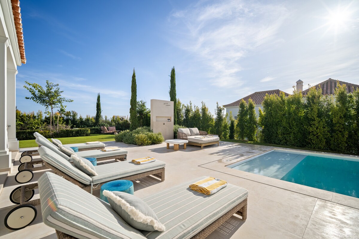 Welcome to Villa Tuscany, a brand new architectural masterpiece located in La Cerquilla, Marbella’s most exclusive address within the prestigious Golf Valley.Spanning 932m² of built luxury on a large 2,350m² plot, this brand-new mansion blends Southern Mediterranean charm with high-end contemporary modern aesthetics. From the moment you enter the residence, you are greeted by generous bright open spaces, 4.4-meter high ceilings, and breathtaking panoramic sea and mountain views.The spaceProfessionally managed by Swish Marbella, your stay includes 5 star concierge support and 24/7 security, ensuring a hotel quality experience with the privacy of your own private resort.KEY FEATURES AND AMENITIESSUMMARY- Accommodation: 6 large en suite bedrooms sleeping up to 12 guests, each with individual climate control- Master Suite: Private terrace with an outdoor shower, spacious walk in closet, TOTO Japanese toilet, and private hot and cold plunge pool from 8C to 38C , a stand-alone bathtub and an opulent shower- Home Office: Dedicated workspace with an electric fireplace, climate control, Samsung LED TV, and its own reading corner- Wellness: Private spa with Turkish bath steam room and fully equipped climate controlled gym-Pools: Two heated salt water pools including a 16 meter main covered pool (1,8 meter max depth, heated up to 33 degrees) with an outdoor shower and a private master plunge pool that can also be cooled down to 8c for a cold plunge experience with an outdoor shower- Entertainment: Fully equipped bar to make your own martinis and cocktails , wine tasting room, and two living rooms with 65+ inch Samsung TVs- Technology: Ultra fast 10 GB internet, full indoor and outdoor WiFi coverage, integrated Sonos sound system throughout the house interior and exterior- Dining: Gourmet open kitchen with Gaggenau appliances plus outdoor kitchen with gas grill and an Argentinian wood and charcoal BBQ- Exterior: 2,350 m2 plot with sea and mountain views, olive tree courtyard with two well-lit ponds, and secure parking for 5 to 6 cars- Garden: Beautifully landscaped and fully lit garden with terraces and patios, featuring a variety of plant species and fruit trees. When in season, you can pick your own lemons or oranges and kamquat-Climate Control: Both underfloor heating and A/C in every room and space, can be individually controlled in every room and space- Security: 24/7 monitored alarm system, external cameras, private driveway, and safes in all 6 bedrooms- Maintenance: Dedicated gardeners, pool technicians, and maintenance team ensuring immaculate condition - Location: La Cerquilla Golf Valley. 7 minutes from Puerto Banus, 10 minutes from Puente Romano and Marbella Club, and steps from Aloha Golf, Las Brisas Golf, and Los Naranjos GolfTHE ULTIMATE WELLNESS AND SPA EXPERIENCE- Private Spa: Traditional Turkish bath steam room for total relaxation- Professional Home Gym: Climate controlled with 50 inch Samsung TV, Sonos sound system, stationary bike, kettlebells, free-weights, bench press and squat machine, foam rollers,and Alo yoga mats- Two Private Salt Water PoolsMain Pool: 16 meter salt water heated pool up to 33C with automatic cover and 1.8m maximum depth and an outdoor shower and sun-beds around the pool- Master Plunge Pool: Located on the master terrace. Heatable up to 38C or coolable down to 8C for a true cold plunge experience, with sun loungers for relaxationENTERTAINMENT AND TECHNOLOGY- Media: Two living rooms with 65+ inch plus Samsung LED TVs- Audio: Integrated Sonos sound system throughout the house, indoors and outdoors- Connectivity: Ultra fast 10 GB internet ideal for remote work or streaming with full property coverage- Social Spaces: Fully equipped bar, elegant wine tasting room, and multiple seating areas throughout the estate. It truly feels like moving through your own private villageGOURMET LIVING- Chefs Kitchen: Spacious open plan kitchen with Gaggenau appliances, plate warmers, three fridges, and one large freezer- Alfresco Dining: Outdoor kitchen with gas grill and secondary Argentinian wood and charcoal BBQHerb Garden: Fresh herbs available directly from the propertyOUTDOOR OASIS- Expansive Grounds: Four large terraces and a charming central patio surrounded by ancient olive trees and illuminated ponds- Fun and Games: Ping pong table, badminton net, and rackets, board games- Views: Panoramic sea, mountain, and Golf Valley viewsSUMMARY - SPACE ROOMS AND LAYOUTTHE SPACE- Total Build Size: 932 m2- Plot Size: 2,350 m2- Levels: 3 including basement, ground floor, and upper floor- Bathrooms: 8 modern bathrooms plus a high end TOTO Japanese toilet in the master suite- Underfloor heating throughout the house with individualised climate control in each room- 2 outdoor showers- 4 terraces and 1 patioBEDROOM CONFIGURATION SLEEPS 12Bedrooms: 6 spacious en suite bedrooms- Master Suite Upper FloorPrivate expansive terrace with sea viewsPrivate salt water plunge pool cooled or heated from 8C to 38CEn suite bathroom with freestanding bathtub, luxury shower, and TOTO Japanese toiletLarge walk in closetGuest SuitesFive additional en suite bedrooms, each with individual climate control and personal safeLAYOUT BY FLOOR- Lower Level Entertainment and WellnessSpa with Turkish bathProfessional gymBar and entertainment areaWine roomSecond living room cinema area2 ensuite bedrooms1 additional spacious bathroom with shower with access from gym and living room- Ground Floor Social and LivingGrand entrance with 4.4m ceilingsMain living room with fireplaceGourmet Gaggenau kitchenDedicated officeDirect access to courtyard, terraces, and 16m pool2 en-suite bedrooms, 1 bedroom with its own private terrace and direct access to garden- Upper Floor RestSleeping quarters including the master suite, private terraces, and additional large en-suite bedroom with its own private terrace with mountain and sea views and a seating area.Guest accessGuests will have exclusive and private access to the entire 2,3
