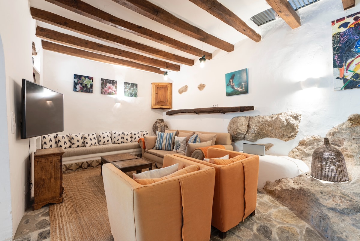 Enjoy a memorable visit when you stay in this unique place full of character and at least 500 years of history of the oldest parts of the mountain village of Deia, situated few steps from the Deia Church.Cas Fideve is an old stone townhouse that was once home to Curtis Roosevelt, the grandson of President Franklin D. Roosevelt while he and his wife were living in Deia.The spaceThe property has 3 floors: The main floor with kitchen, living room/dinning room and outside dining terrace. There are two double bedrooms, bathroom with shower and a library & office on the top floor. There are 2 AC units, one in each of the bedrooms. The property offers a delightful terrace with BBQ for relax and ‘al fresco’ dining, has a small private pool area in front of the entrance to the house (across the street) and a parking space for 1 moderate size car.The rental unit shares walls with neighboring property and on the other hand shares entrance to the neighboring rental unit (this entrance is not used by the other rental unit).The terrace and pool area is of private use for the guests and is not shared with the neighboring rental unit.During the colder and rainy season the outside furniture & textiles will be available only on the covered terrace.🪵🔥 Fireplaces: Please note that the fireplaces in the home are not available for guest use. For safety and insurance reasons, they are decorative only. Thank you for helping us keep the home safe!Non serviced accommodation - the housekeeping is only available for check-in & check-out services.Guest accessSelf-Check-in from 4pm. 🕓 The key box code will be sent a few days before your arrival together with location on your mobile phone (Whats.App).Check-out at 10am. 🕙 The parking is for 1 vehicle and situated in front of the main entrance to the house, across the street. Please rent a moderate size vehicle as a large car will cause you difficulties to get around the old town & park.The plunge pool entrance is right next to the parking in front of the house.Other things to noteIn order to maintain compliance with local laws (Spain) and promote a safe and legal environment for vacation rentals, every guest 16+ years old will be required to submit their passports for registration with authorities’ data collection portal.This includes (for every guest):•Full Name•Date of Birth•Nationality•Passport Number•Home address•Phone number•Email•The number of guests in a party and family relationship details Please kindly understand we will only be able to accommodate registered guests according to this law, thank you. 🙏🏻 The property is not suitable for small children (under age 5) or disabled, must climb stairs throughout the house which would cause them difficulties.No pets allowed.No events or parties allowed.No smoking allowed.Water in the area during the summer season is scarce, please be advised that the water consumption is monitored and in case of shortages the private property tank will be used therefore the water at the property is NOT UNLIMITED and guests are asked to use the utilities RESPONSIBLY and in a sustainable manner, thank you very much.We will only honor bookings which state truly how many people are staying, bookings exceeding the agreed number of guests will be canceled.!!! ACCESS TO CALA DEIA BEACH !!!Please keep in mind the saturation during the summer.In order to insure safety of the road to the beach, the government have put in place an automatic barrier gate which will close once the parking down at the beach is full ( and will open once a parking spot has been released) .THEREFORE WE RECOMMEND TO PLAN YOUR DAY AT THE BEACH BEFORE 10AM TO MAKE SURE YOU CAN PARK & BARRIER IS OPEN. Thank you.Registration DetailsSpain - National registration numberESFCTU00000702800012560100000000000000000000ETV/43766Mallorca - Regional registration numberETV/43766