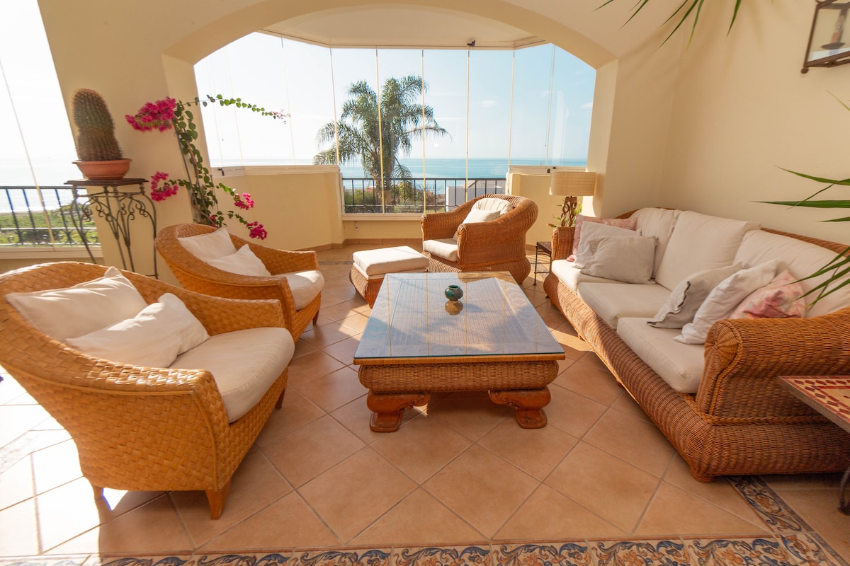 Beautiful and spacious 3 bed, 3 bath apartment located on the second floor of Elviria's popular beachfront complex 'Hacienda Playa'. Featuring 3 double bedrooms, large living and dining room, fully equipped kitchen with washer and dryer. The sunny glassed terrace with amazing sea views, comfortable lounge set and dining table are great for relaxing. The apartment is furnished to a high standard in a traditional spanish theme with wooded furniture and attention to details.Registration DetailsSpain - National registration numberESFCTU0000290280001065030000000000000000VFT/MA/142948Andalucia - Regional registration numberVFT/MA/14294